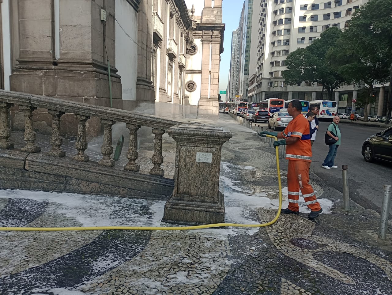 Especialmente para este fim de semana, a Companhia colocou novas papeleiras, retirou pichações nas paredes da Igreja da Candelária, do seu entorno e do chafariz, e pintou postes e paredes.